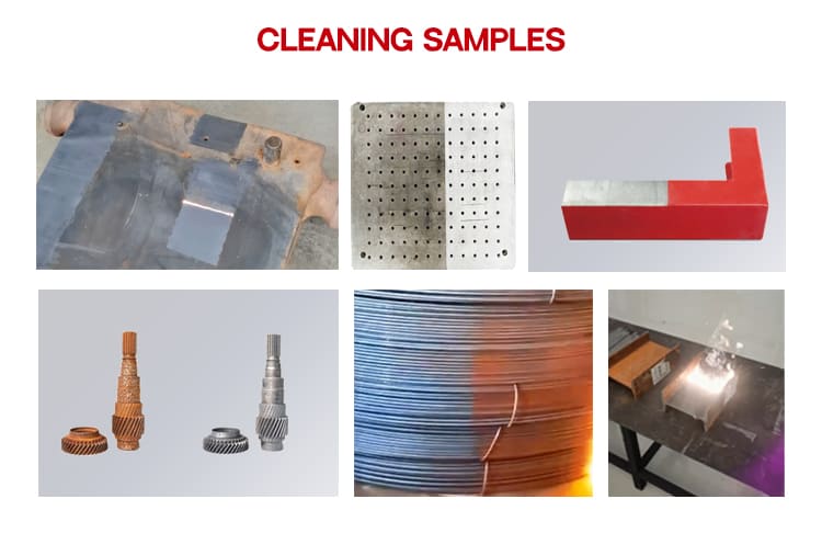 Mar mheaisín glantacháin léasair neamhtheagmhála, ní dhéanann sé damáiste don tsubstráit páirteanna, gan aon shábháil fuinnimh inchaite agus cosaint an chomhshaoil, agus féadann sé roisín, ola, stains, salachar / meirge, sciath, cumhdach agus péint a bhaint as dromchla an phíosa oibre chun freastal ar na ceanglais ghlantacháin ar shamhaltú casta agus suíomh fíneáil sa réimse próiseála tionsclaíoch, éifeacht glantacháin níos airde a bhaint amach, agus buntáistí an chostais táirgthe ag baint le héifeacht glantacháin níos ísle.
