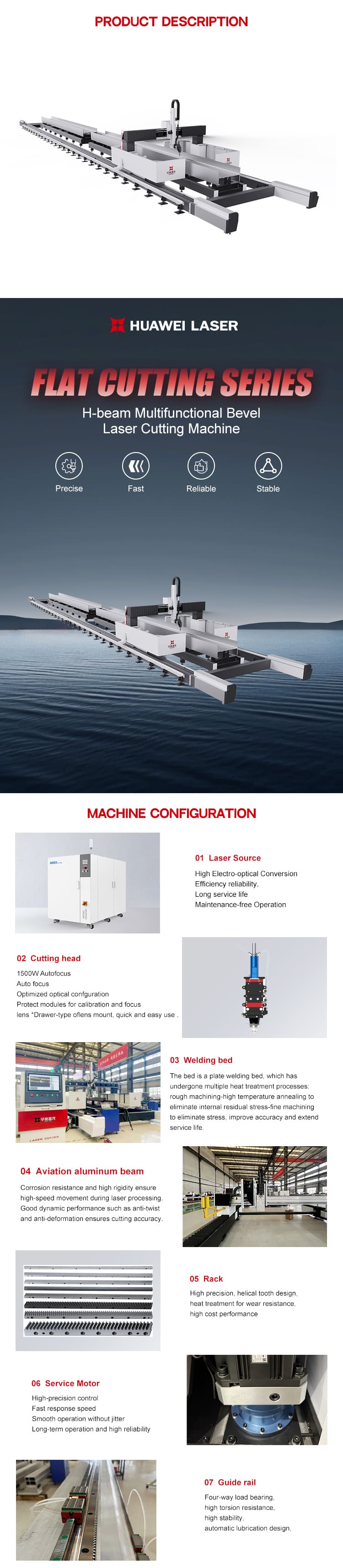 Cuireann HUAWEI LASER an Meaisín Gearradh Léasair H-bhíoma 3D CNC 12000W i láthair le haghaidh Próiseáil Cruach Miotail, ag seachadadh cumhacht ultra-ard le haghaidh cruach struchtúrach, bíomaí, agus déantúsaíocht tromshaothair. Le tacaíocht ó T&F chun cinn, táirgeadh ar scála mór, agus stoc iontaofa, soláthraímid praghsáil dhíreach ón monarcha agus seachadadh tapa ar an mórchóir.