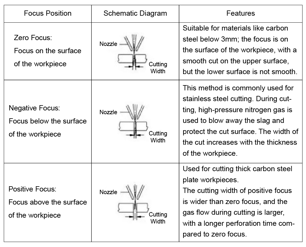 Sa phróiseas gearrtha léasair, tá sé ríthábhachtach an suíomh fócais a roghnú go cruinn bunaithe ar an gcineál ábhair chun cáilíocht agus éifeachtúlacht a ghearradh. Tugadh aird shuntasach ar an ngné theicniúil seo ar fud an tionscail.